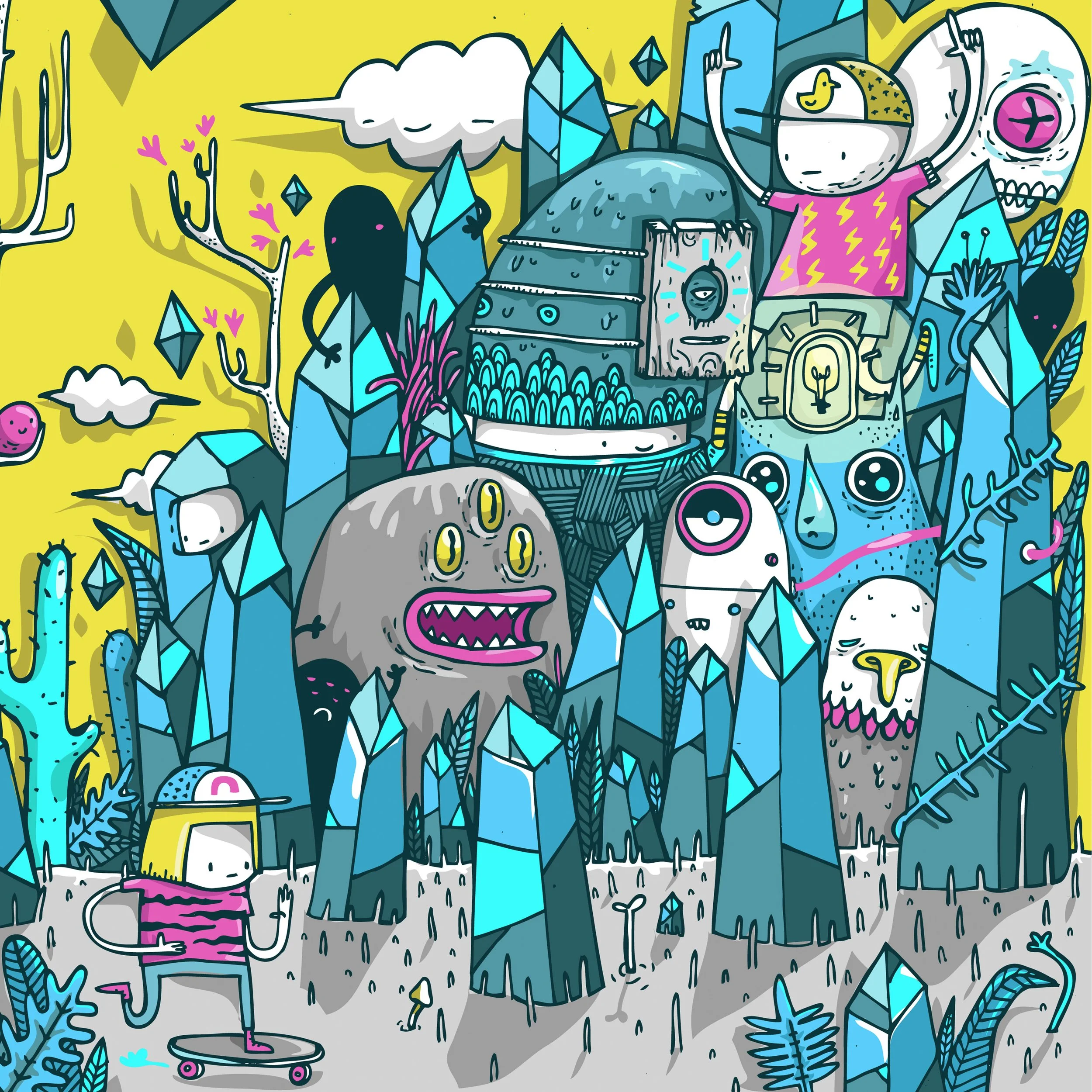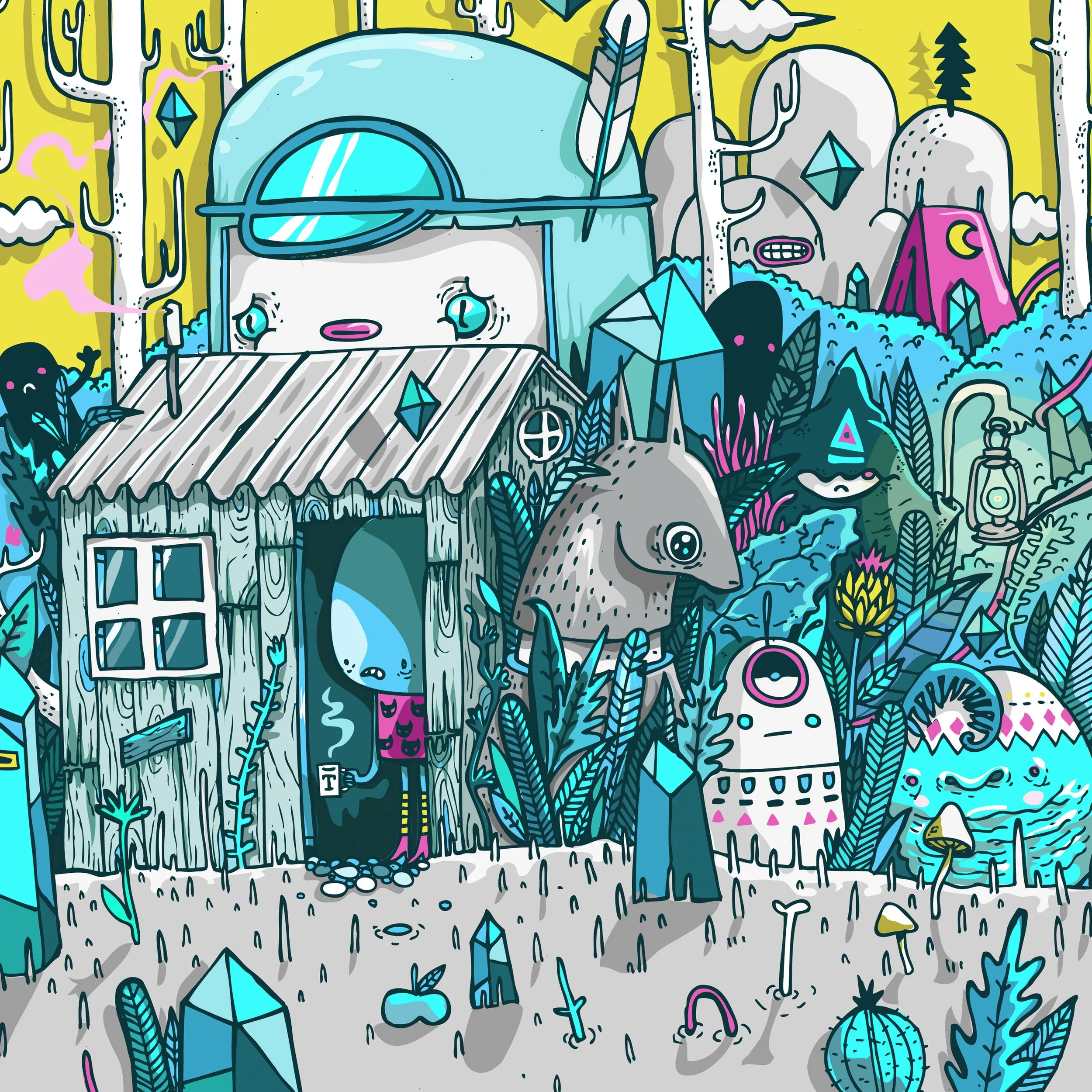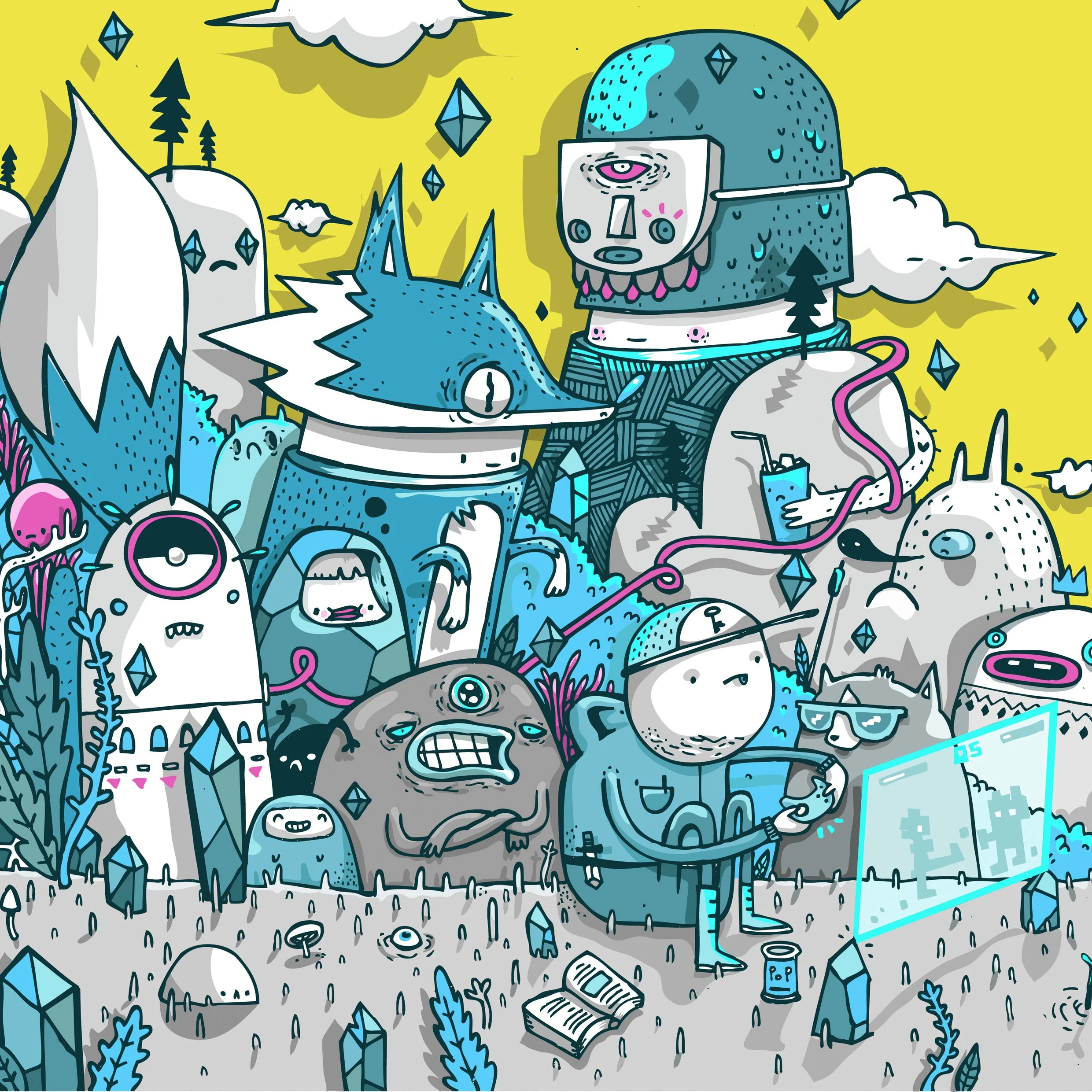 A collection of concepts and developed illustrations for Squirls unique characters and worlds used in various settings for multiple purposes.